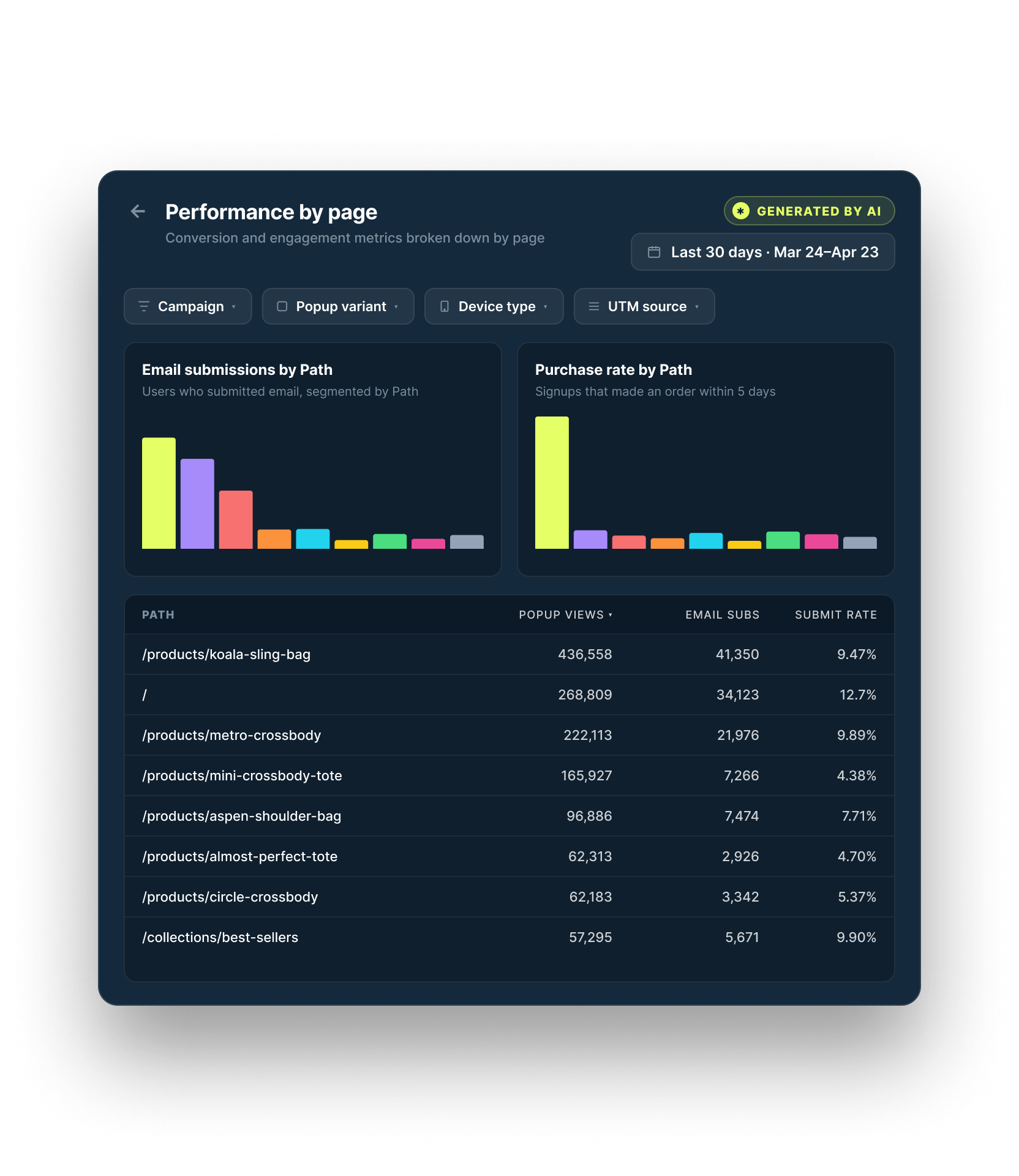 Track performance over time with metrics like LTV, repeat behavior, and downstream conversion.