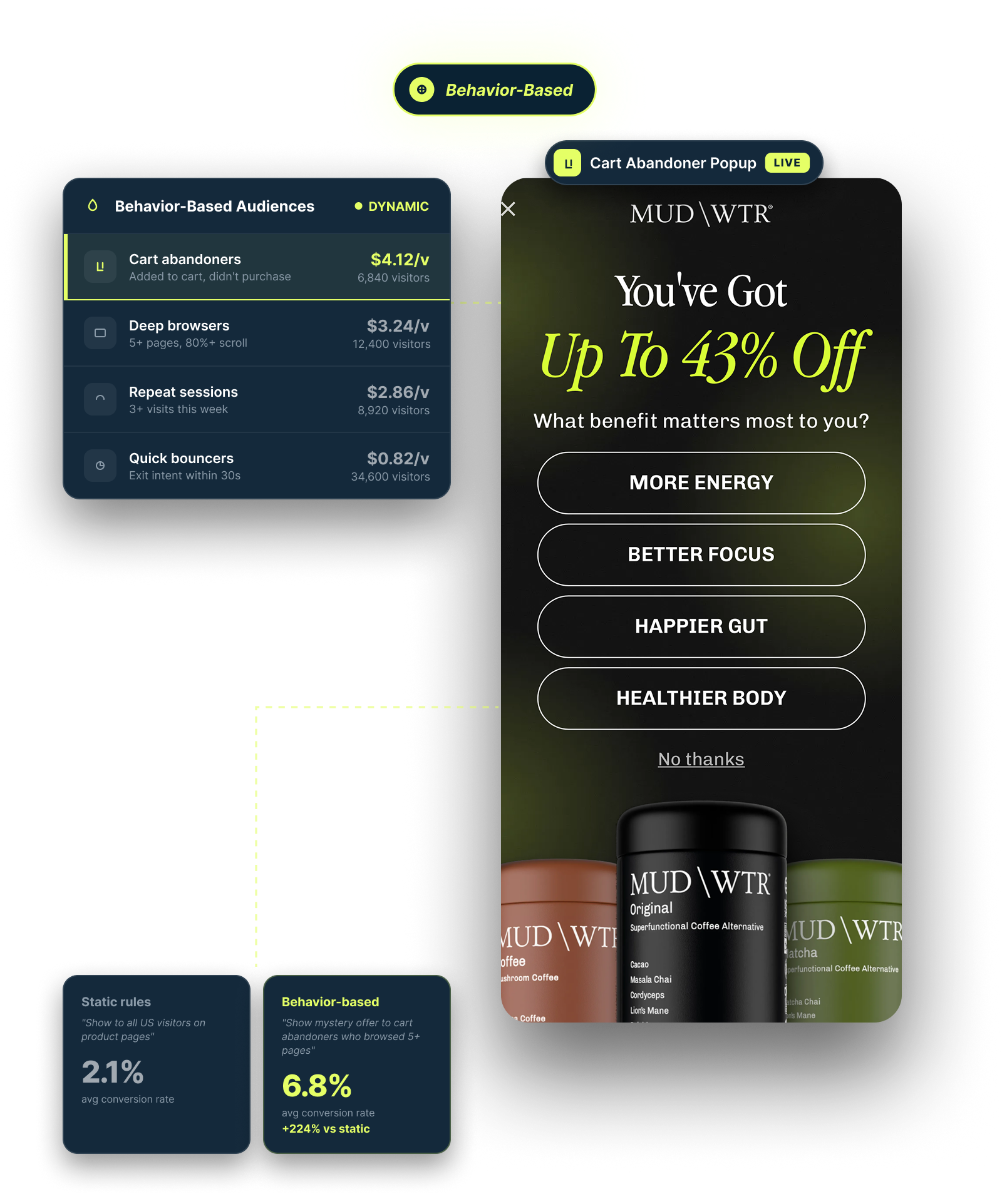 Use behavior-based logic and traffic source segmentation to show the right popup to the right visitor and drive higher conversion.