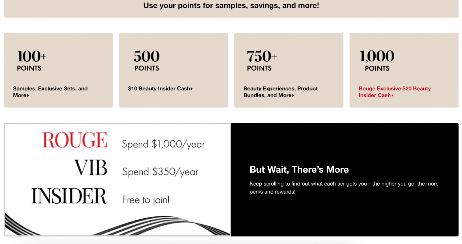 Sephora's Beauty Insider program demonstrates how tiered rewards can create aspirational engagement. With three tiers—Insider, VIB, and Rouge—customers have clear goals to work toward.