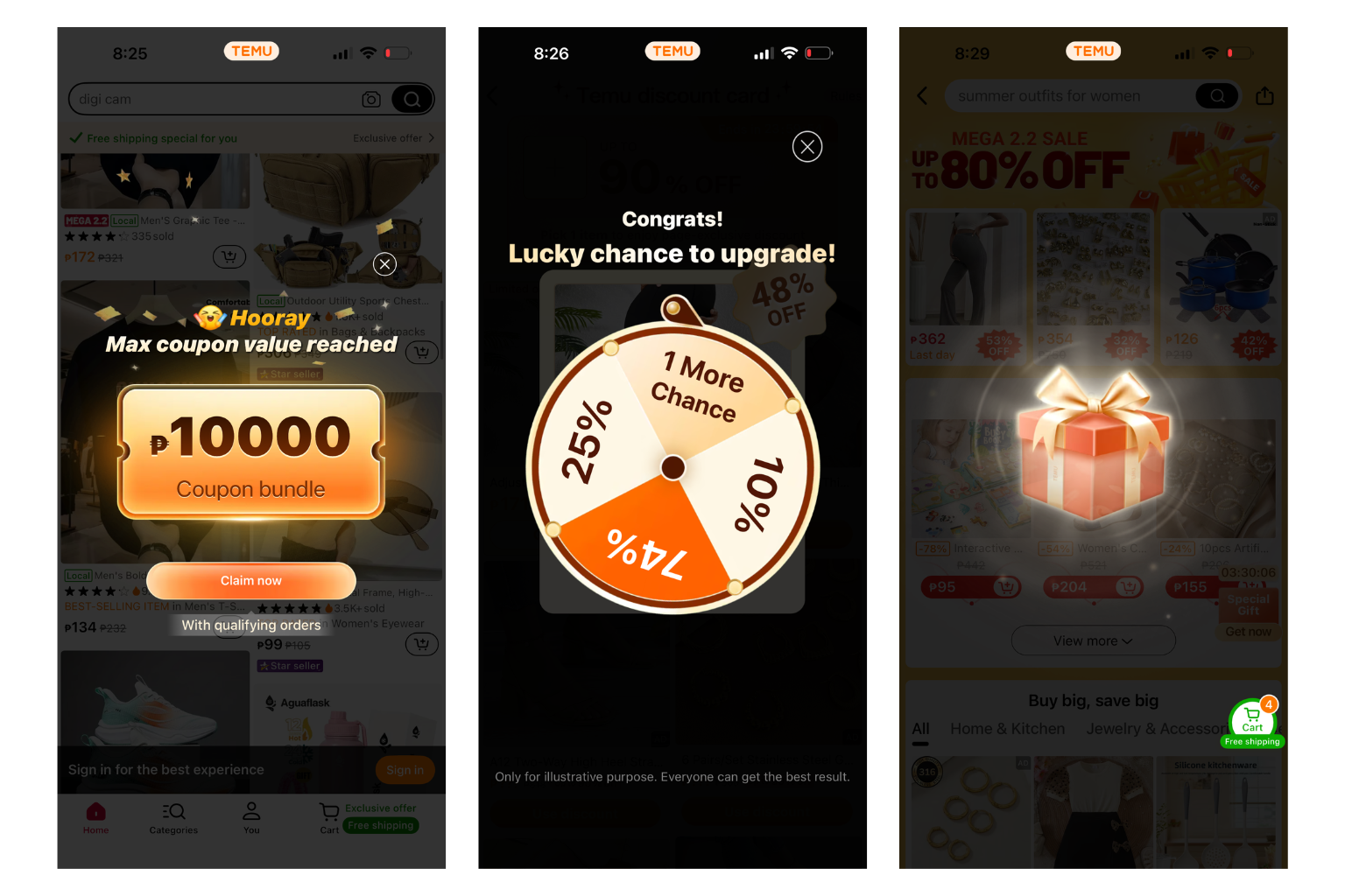 - Spin wheels and scratch cards: Multiple chances to "win" discounts daily