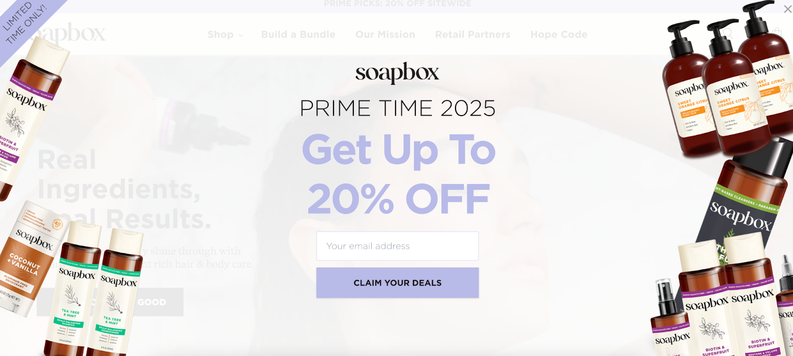 Soapbox, a personal care brand with a buy-one-donate-one soap mission, used their popup to address common customer questions while building their social impact story. This approach reduced friction by proactively answering concerns within the signup experience.