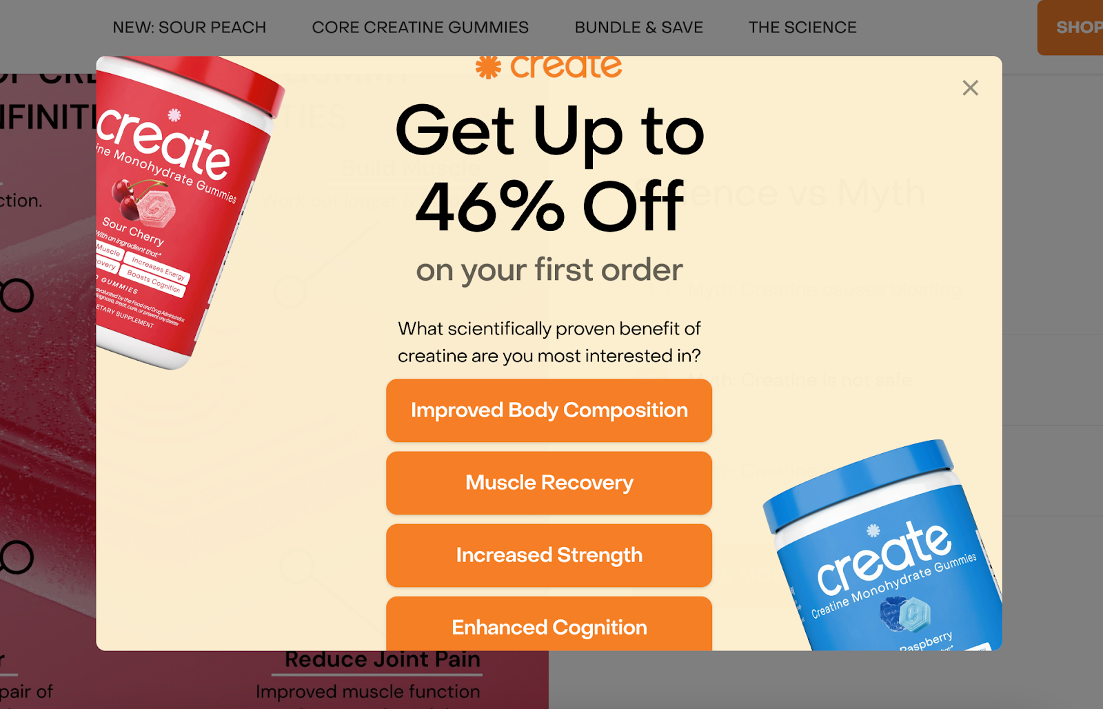 - Two-step popup progression combining discounts with education
