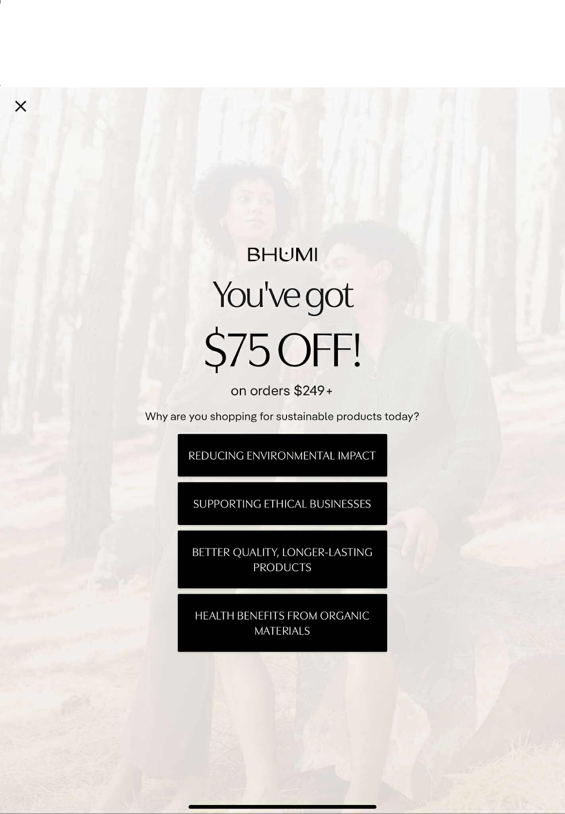 Instead of the typical static "10% off" offer, they created a dynamic experience that educated visitors about their sustainability mission while collecting valuable segmentation data.