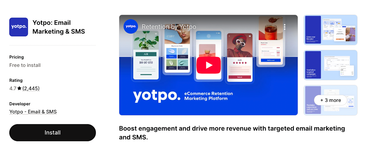 - Multi-Product Synergy: Seamlessly connects with Yotpo Reviews and Loyalty to personalize marketing messages with social proof and reward data.