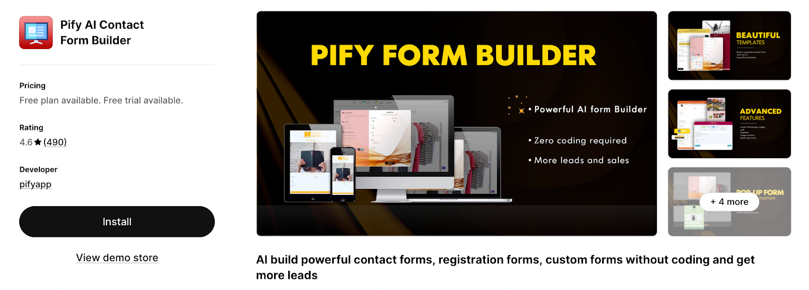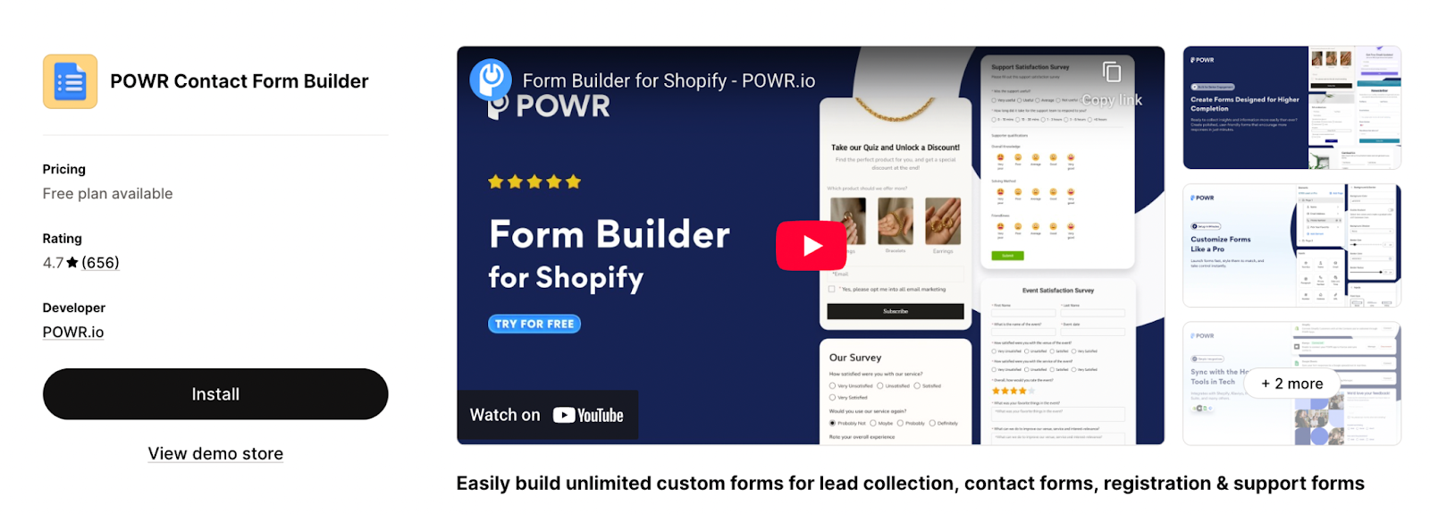 POWR is a well-known website optimization suite, and its form builder is one of the most-installed apps on Shopify. It offers 12+ pre-built form templates and a floating widget/sidebar option for always-visible lead capture.