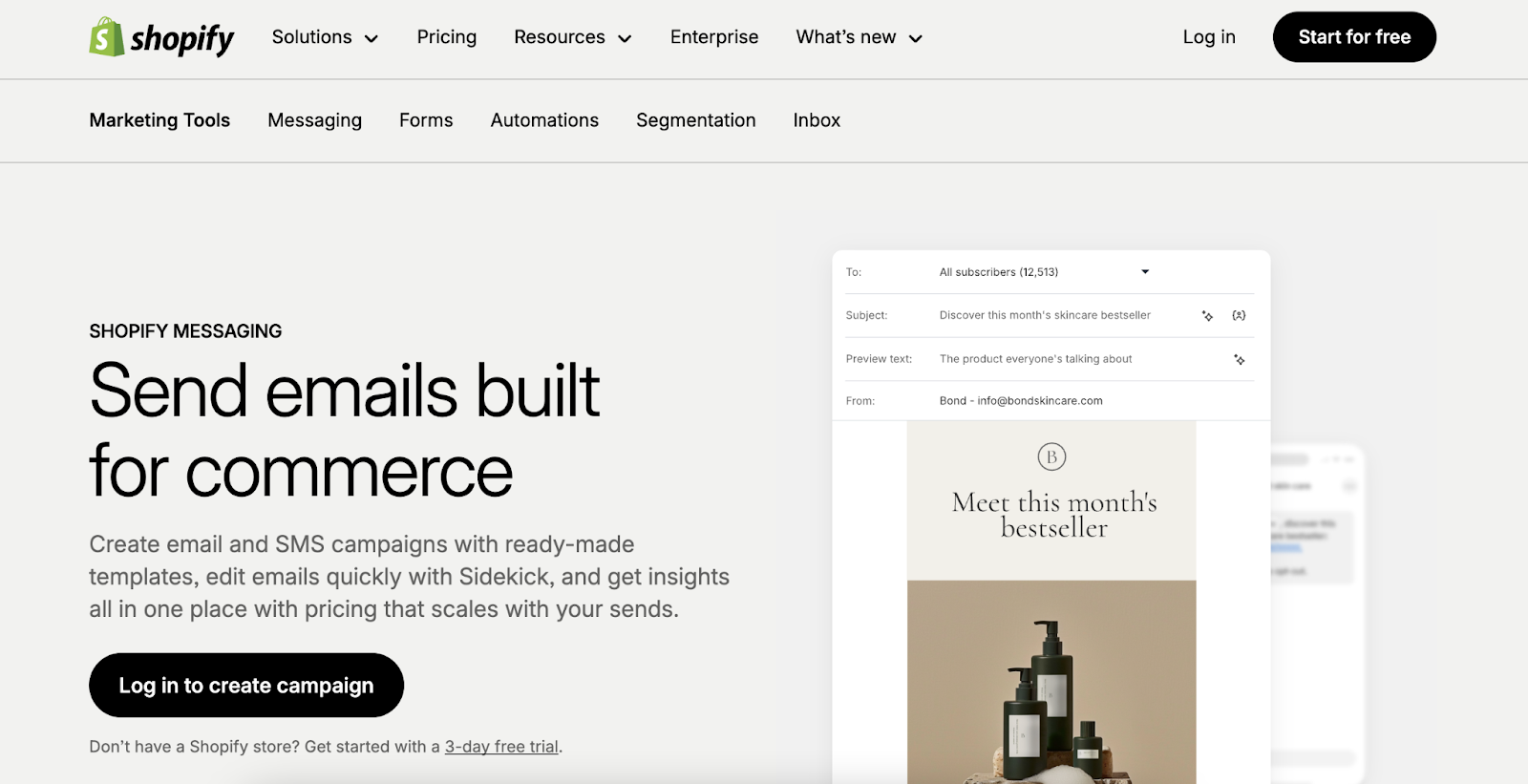 Pricing: Free (included with Shopify subscription). $1 per 1,000 emails after 10K/month. Then standard pricing starts from $25/mo up to $2,300/mo.