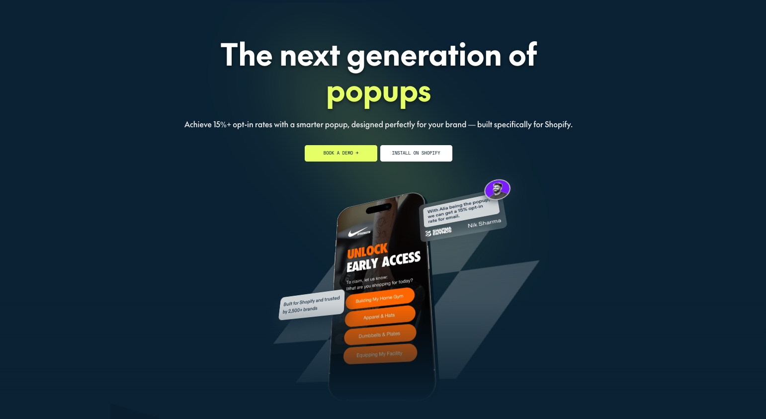 1) Alia Popups - The app of choice for Shopify’s President & ambitious shopify brands