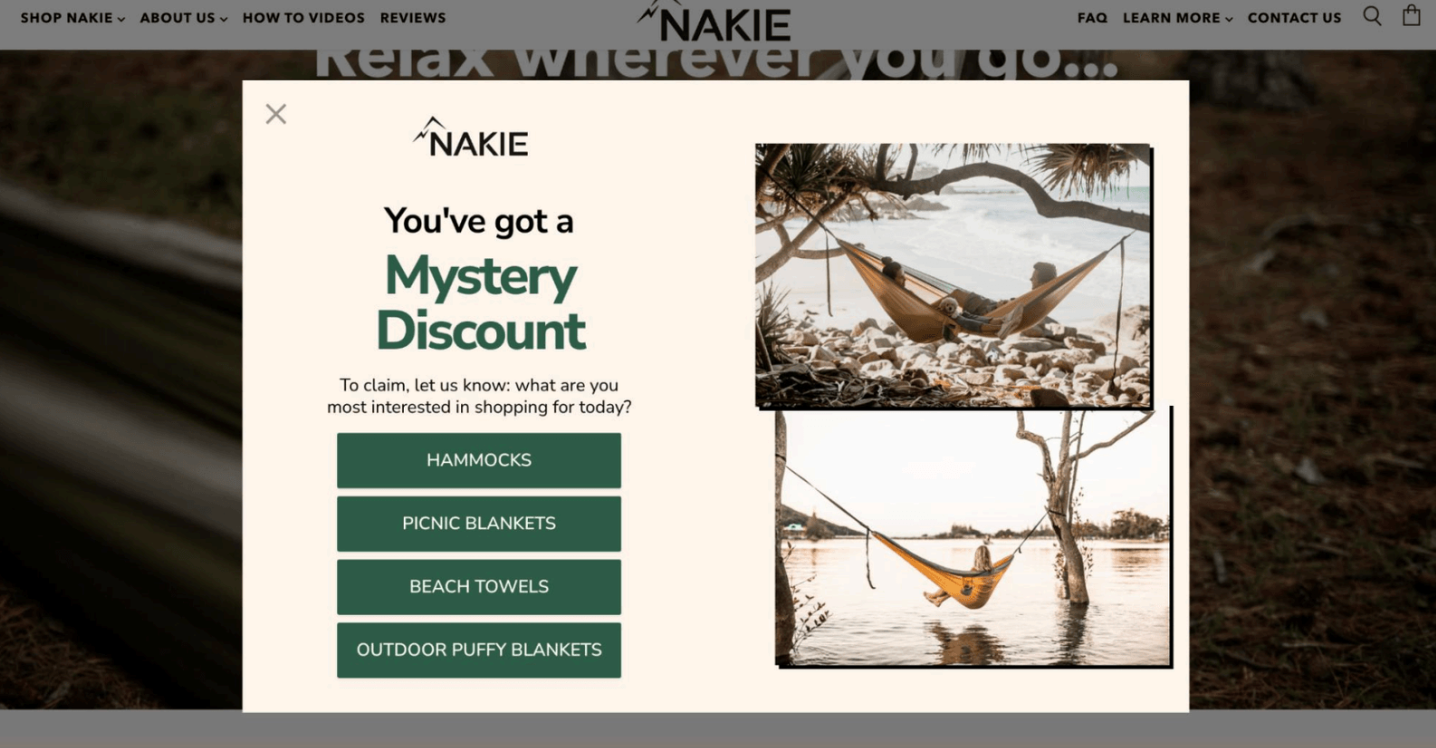 Nakie, a sustainable outdoor gear brand, was spending $2M+ monthly on paid media but was stuck with 5–6% opt-in rates using Klaviyo's rigid popup format. Their static "10% off" offers couldn't segment subscribers or tell their sustainability story effectively.