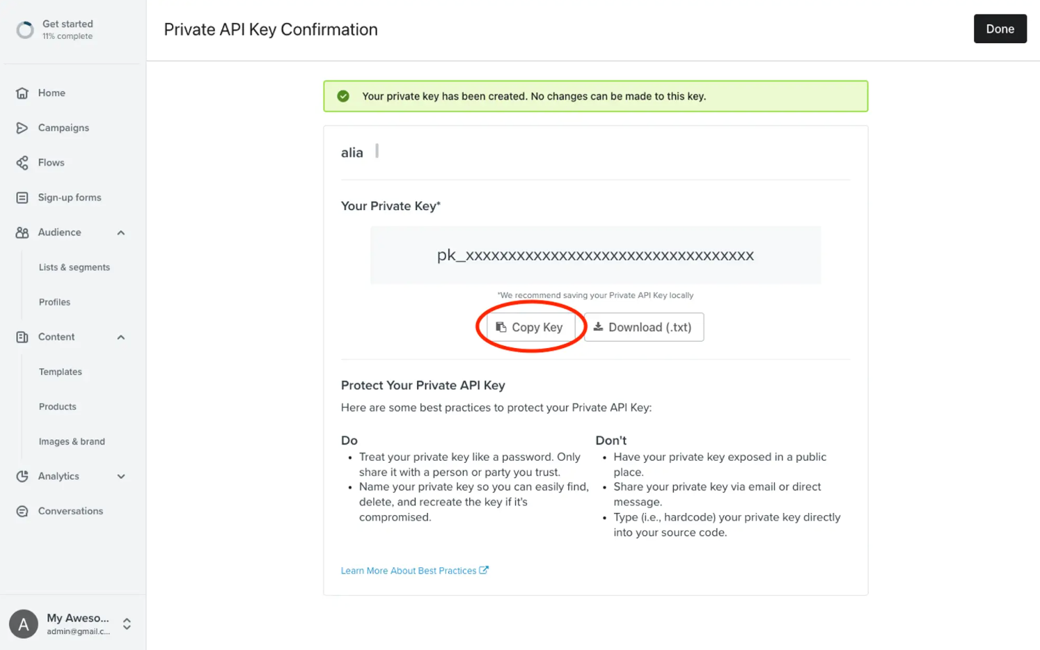 Step 1: Create Your Klaviyo API Key
