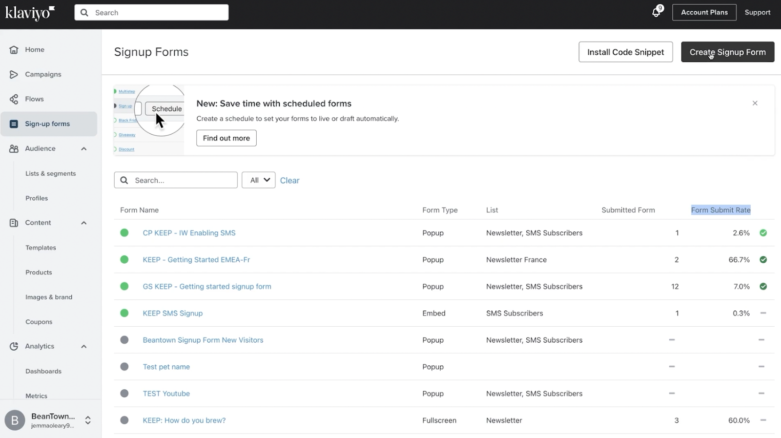 - Navigate to Signup Forms in the left-hand menu.