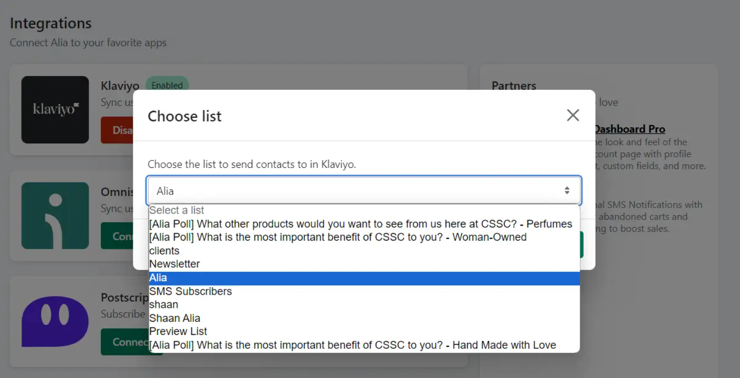 - Option B (Segmented): Create a new list in Klaviyo called "Alia" and select that. This is useful if you want to keep these leads separate initially.