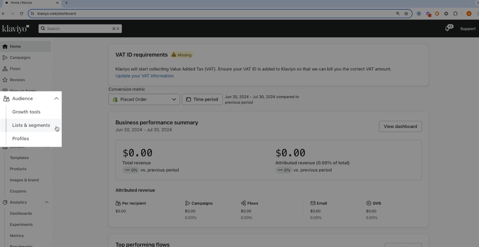 - Go back to your Klaviyo dashboard.