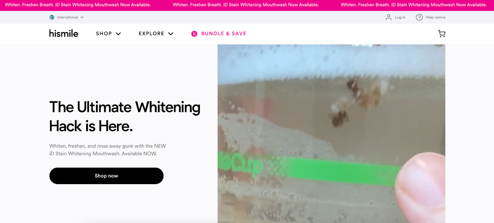 Hismile turned teeth whitening into a social media phenomenon with a product-demo-first content strategy. Their TikTok and Instagram presence drives massive awareness, while their clean, simple Shopify store converts that traffic efficiently.