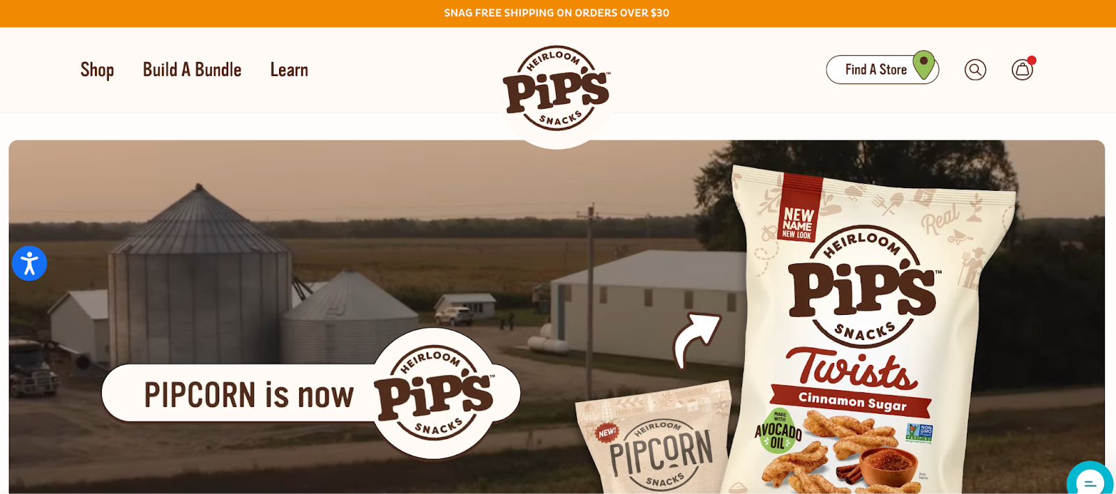 Pipcorn is a family-owned heirloom snack brand that went viral after appearing on Shark Tank and has maintained momentum through clean branding, a sustainability message, and a focused product line. Their site is a masterclass in simplicity — limited SKUs, clear messaging, and beautiful product photography.