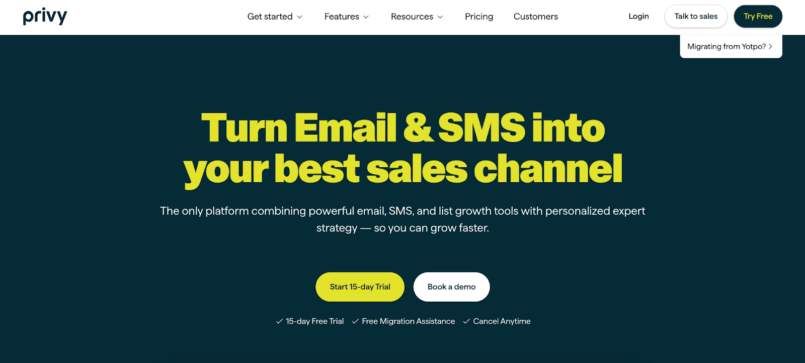 Privy combines email and SMS marketing with popup tools specifically for Shopify merchants.