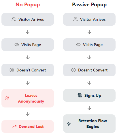 This creates a hidden cost: visitors who don't convert immediately leave anonymously, limiting future retention and revenue.